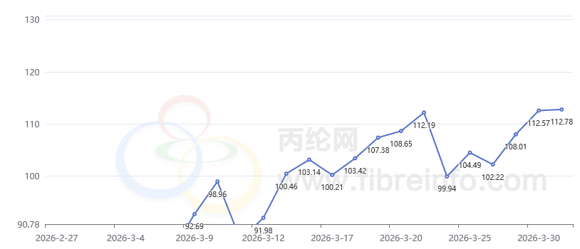 3月1日-3月31日布倫特原油報價 (美元/桶)
