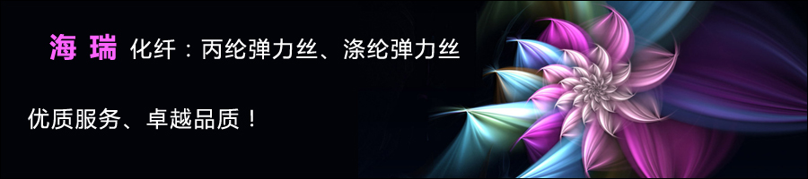 嘉興市海瑞化纖廠主要生產(chǎn):30D 35D 40D 45D 50D 60D 75D 300D丙綸彈力絲、100D 150D 300D滌綸彈力絲、30D 45D 50D 75D 300D丙綸加彈絲、100D 150D 300D滌綸加彈絲。