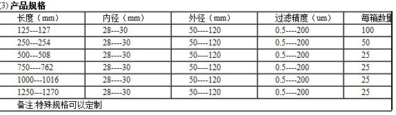 4、PP桔皮濾芯 (1) 產(chǎn)品介紹: 它是PP熔噴的改進(jìn)品種,主要是外壁由光滑變成了凹凸不平,就象桔子皮一樣,所以俗稱“桔皮濾芯” (2) 優(yōu)點(diǎn): 納污量比普通熔噴大20%,接觸面比普通熔噴大10%左右。 應(yīng)用范圍: 飲用水前置過(guò)濾處理;R.O滲透的前置過(guò)濾處理; 制藥用無(wú)菌水、純凈水的前置過(guò)濾處理;飲料、釀酒制造中的預(yù)過(guò)濾;食用油制造中的預(yù)過(guò)濾;各式漿液的過(guò)濾;化工原料、有機(jī)溶劑的過(guò)濾;強(qiáng)力膠、乳膠、普通膠水制造中的過(guò)濾;機(jī)械用油、切削油等過(guò)濾;PCB藥液的過(guò)濾 ;電著涂裝(ED)、化學(xué)藥液的過(guò)濾;工業(yè)用水、電子、電鍍藥液的過(guò)濾;泳池清潔水處理的預(yù)過(guò)濾;顯像用藥液、墨水的過(guò)濾。