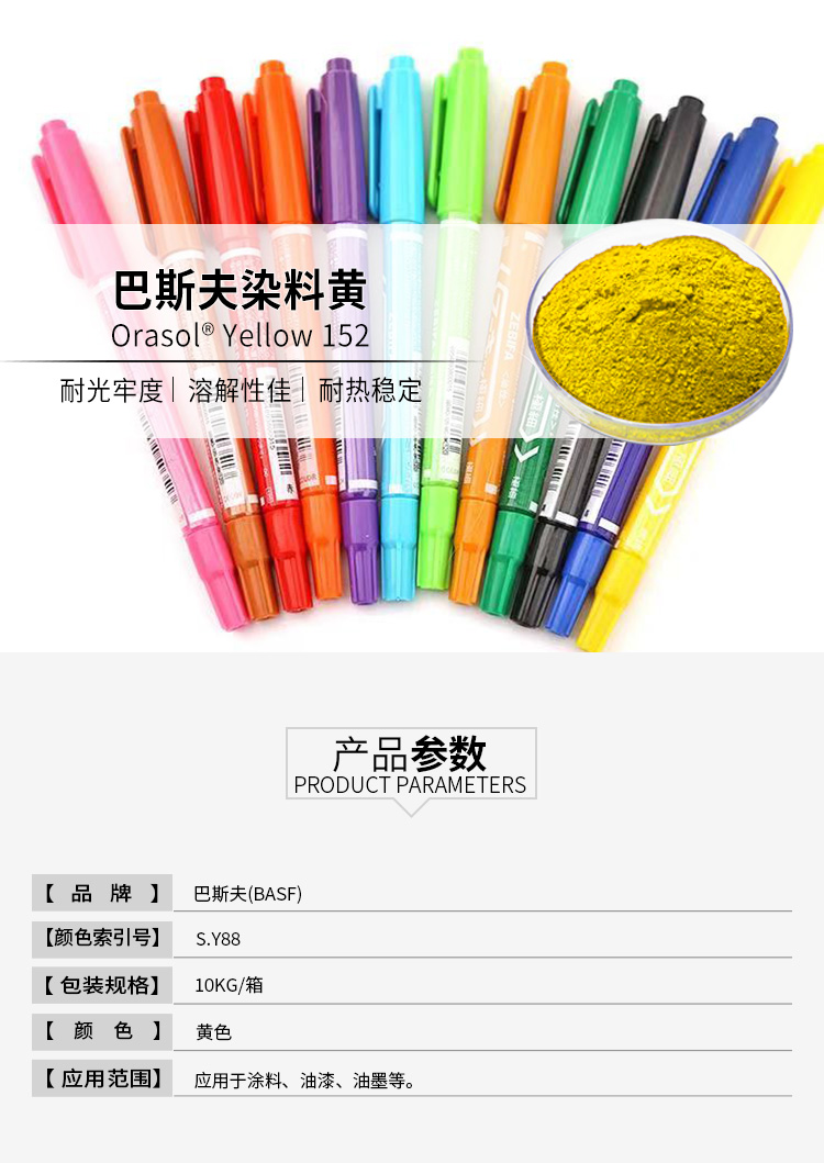 巴斯夫Orasol染料152黃奧麗素高耐光耐高溫金屬絡(luò)合染料溶劑黃88