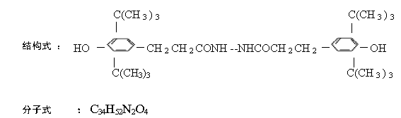化學(xué)名稱 英文 :Benzenepropanoic acid.3,5-bis(1,1- dimeth ylethyl)-4-hydroxy-2-〔3-〔3,5-bis(1,1-dimethylethyl) - 4-hydroxyphenyl〕-1-oxopropyl〕hydrazide 中文 :N,N'-雙[3-(3,5-二叔丁基-4-羥基苯基)丙酰]肼
